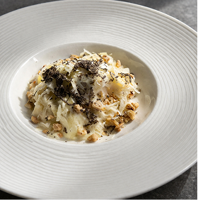 with parmesan cream and hazelnuts